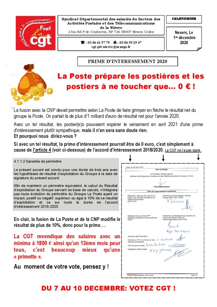 LA POSTE: PRIME D’INTERESSEMENT