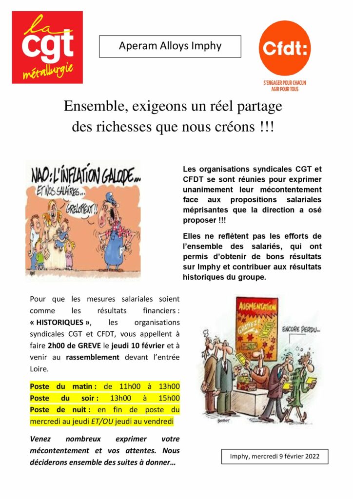 APERAM ALLOYS IMPHY , RASSEMBLEMENT LE 10 FÉVRIER DE 11H A 15H: ENSEMBLE, EXIGEONS UN RÉEL PARTAGE DES RICHESSES QUE NOUS CRÉONS !!!