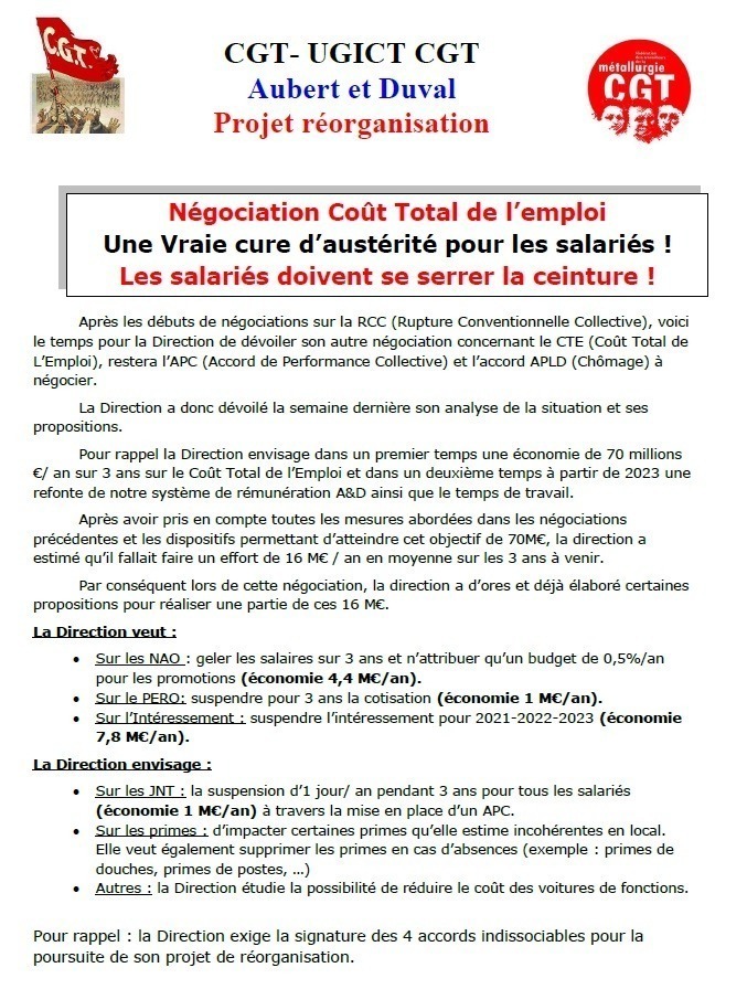 AUBERT ET DUVAL IMPHY : NEGOCIATION COUT TOTAL DE L’EMPLOI