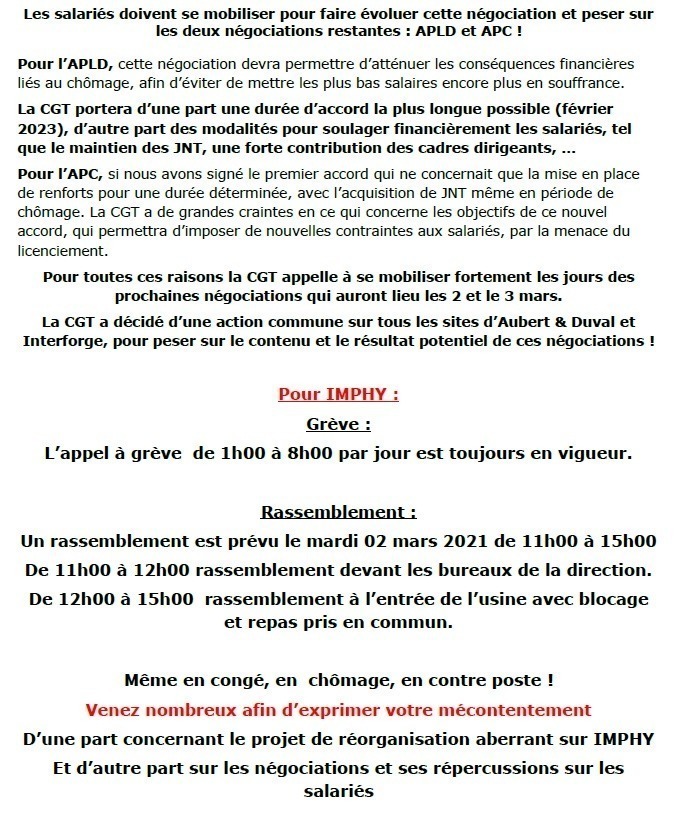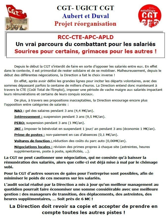 AUBERT ET DUVAL : PROJET REORGANISATION UN VRAI PARCOURS DU COMBATTANT POUR LES SALARIES