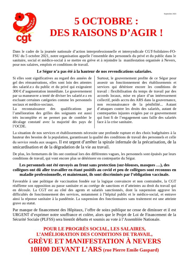 5 OCTOBRE : DES RAISONS D’AGIR DANS LA SANTÉ !