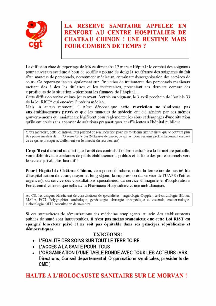 LA RÉSERVE SANITAIRE APPELÉE EN RENFORT POUR LE CH DE CHÂTEAU-CHINON !