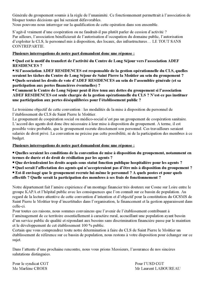 CLS ST PIERRE : LETTRE OUVERTE
