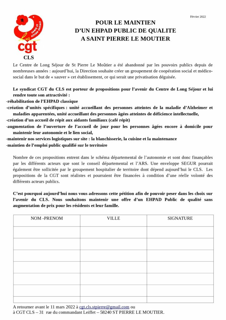 PÉTITION POUR LE MAINTIEN D’UN EHPAD PUBLIC DE QUALITÉ A SAINT PIERRE LE MOUTIER