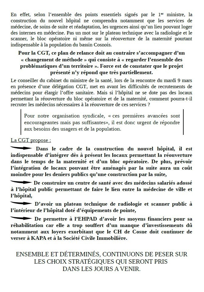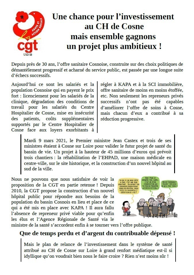 UNE CHANCE POUR L’INVESTISSEMENT AU CH DE COSNE MAIS ENSEMBLE GAGNONS UN PROJET PLUS AMBITIEUX !