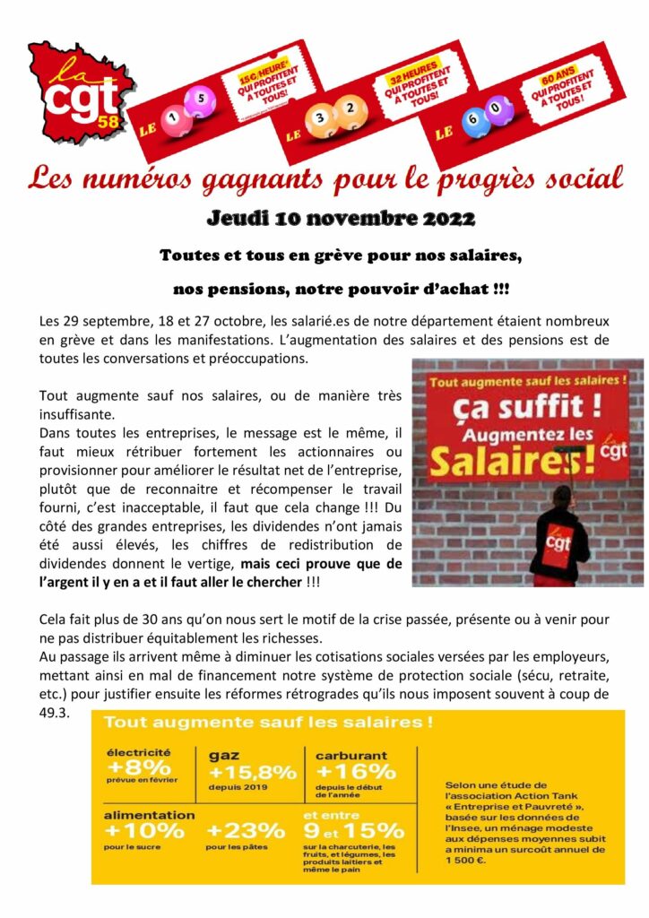 10 NOVEMBRE 2022 : TOUTES ET TOUS EN GRÈVE POUR NOS SALAIRES, NOS PENSIONS, NOTRE POUVOIR D’ACHAT !!!