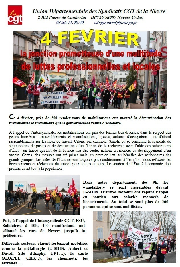 4 FEVRIER : LA JONCTION PROMETTEUSE D’UNE MULTITUDE DE LUTTES PROFESSIONNELLES ET LOCALES