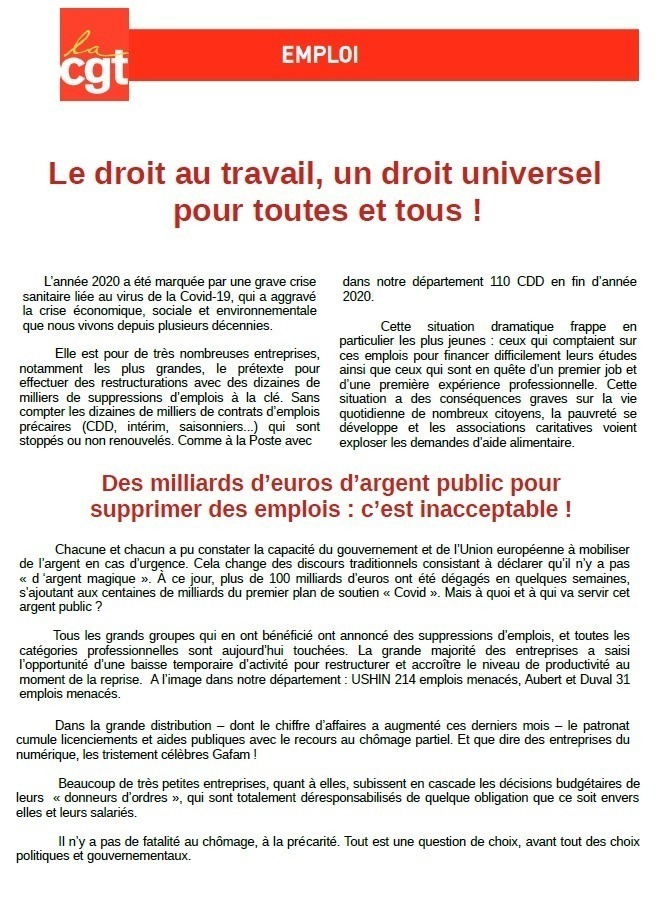 EMPLOI : LE DROIT AU TRAVAIL, UN DROIT UNIVERSEL POUR TOUTES ET TOUS !