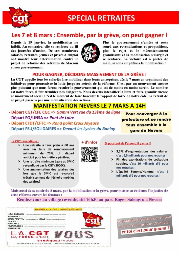 LA FRANCE A L’ARRÊT LE 07 MARS TOUTES ET TOUS MOBILISES PAR LA GRÈVE POUR NOS RETRAITES !