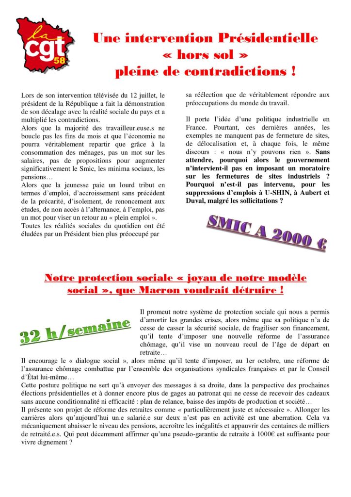 UNE INTERVENTION PRÉSIDENTIELLE « HORS SOL » ET PLEINE DE CONTRADICTIONS !